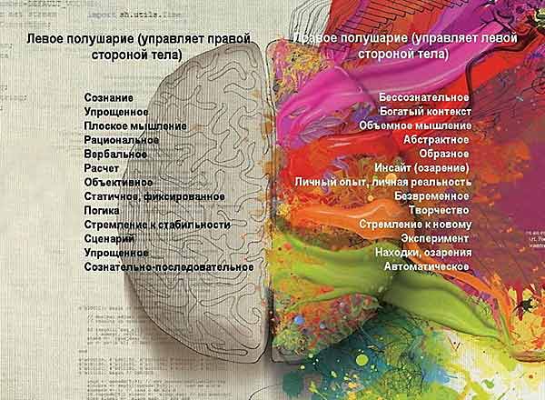 Правое полушарие воспринимает мир таким, каков он есть, во всем многообразии, левое полушарие упрощает мир, чтобы его можно было изучать и как-то менять. Без правого полушария мы бы превратились в роботов, без левого — не смогли анализировать, обобщать и действовать, мир превратился бы в хаос. »»»