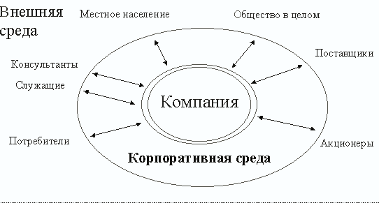 Многолетняя противоречивая практика работы компаний (корпораций) дала аналитическим и консалтинговым фирмам очень большой материал для обобщения и выработки единых норм и рекомендаций по управлению данными организациями. Все это создает определенную упорядоченность в понимании сути коммерческих отношений и интересов самых разнообразных структурных категорий общества. В процессе функционирования компании в ее корпоративную среду (рис. 1) вовлекаются тем или иным способом различные субъекты общества и категории людей.