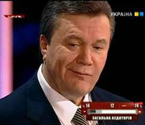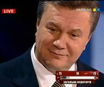 В первом случае мы видим с трудом сдерживаемую улыбку В. Януковича. Он только что узнал, что победил во втором туре голосования на выборах Президента Украины. И улыбка, это эйфорическая реакция на вопрос ведущего о его, как Президента, первых планах. На второй фотографии В. Янукович улыбается в ответ на «неудобные» вопросы журналиста. Таким образом, он пытается придать обсуждаемой теме несерьезный характер и одновременно получить одобрение от зрителей. Станиславский считал, что наигранные эмоции отличаются от настоящих, в том числе и интенсивностью их изображения. И в этом смысле В. Янукович с искусственной улыбкой, мало чем отличается от большинства политиков старой закалки.