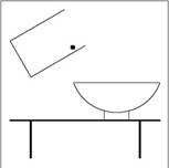 3. Вода вот-вот выльется из стакана в миску, стоящую на столе. Нарисуйте линию в стакане, представляющую поверхность воды (начните с обозначенной точки).