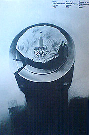 Такая проявленность композиционных средств позволяет художнику быстрее донести содержание плаката до зрителя, точнее выразить главную мысль, причем так, что она будет однозначно совпадать с темой плаката. Приведем пример. В плакате, посвященном Московской Олимпиаде (рис. 68), уходящие в перспективу линии беговых дорожек, ступени беговых барьеров и деления на их перекладинах образуют почти математический, открытый ритм, который можно охарактеризовать с помощью профессии. Этот ритм сосредоточивает внимание зрителей-спортсменов на награде за успехи в соревнованиях. Тем самым плакат не допускает множественности толкования его содержания и активизирует всех спортсменов в равной степени на достижение высоких результатов. Ритмичность самой медали отличается от ритмичности остальных элементов композиции. Ее ритмы и пластика характерны для станкового искусства. Неявность ритмов медали создает ей некоторую притягательную таинственность, в данном случае полностью оправданную.