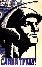 Композиционные законы, принципы и средства сами собой не определяют появление художественного образа, но неудачное обращение с ними существенно снижает качество плаката. Например, в плакате «Слава труду!» (рис. 66) в попытке соединить символы труда серп и молот в единую структуру был избран формальный прием, не вытекающий из существа задачи. В результате нарушения принципа структурности и формального понимания способов соединения пластик защитная каска рабочего и разрозненные серп и молот превратились в конгломерат из элементов композиции, а не в их единство.