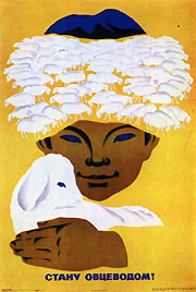 Эти примеры показывают, что композиционный прием определяет не формальное подобие структур, а выражение глубинных сторон содержания плаката. В этой связи отметим, что композиционный прием, выбранный для плаката «Стану овцеводом!» (рис. 84), неудачен тем, что раскрывает только утилитарную, не главную сторону данной профессии.
