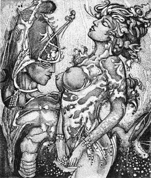 «Эрос на простейшей стадии своего развертывания не может проявиться иначе, чем в виде неутомимой и мучительной жажды». «Это рана, наносимая самому существу человека». «Это психическая агрессия, порождающая постоянное и настойчивое тяготение к женщине и любви» (Ю. Эвола). «Что касается женской сексуальности, то Лакан после своих встреч с Батаем и чтением Мадам Эдварды рассматривал ее теоретически как нечто отвратительное, как черную дыру, как предмет, «оснащенный» крайней оральностью, как непознаваемую субстанцию: реальное, но устроенное иначе» (Э. Рудинеско).