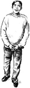 Ваш собеседник шагает, сцепив руки внизу живота.