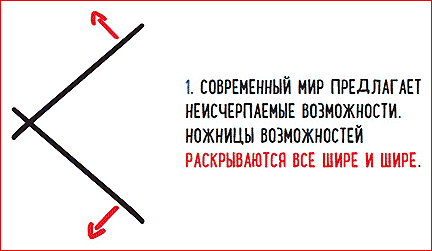 - Выбор возможностей, предлагаемый нам современным миром, самый большой за всю историю человечества. Ножницы возможностей раскрыты так широко, как никогда ранее.