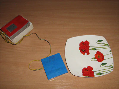Решение проблемы борьбы с лишними килограммами требует разработки новых эффективных психотехнологий изменения пищевого поведения и выработки здоровых привычек потребления пищи. Аппаратурное оформление предлагаемой разработки включает в себя киберметроном, выполненный в виде предварительно записанного на звуковоспроизводящем устройстве своим голосом счета (один, два, три и т.д.), озвучиваемого в момент касания столового прибора (вилки, ложки) находящейся на тарелке пищи. Автоматическое управление метрономом осуществляется движением руки человека в момент потребления очередной порции пищи, что и позволяет отнести его к категории киберустройств. Регистрация касания столового прибора к пище осуществляется бесконтактно (путем размещения под обычной тарелкой или другой столовой посудой специального электронного сенсора, реагирующего на касание столового прибора к пище ).