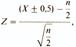 п/2 — число сдвигов в ту или в другую сторону при чистой случайности