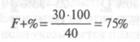 После этого ряд показателей вычисляется в процентах. F+% — процент ответов с четкой формой — это процентное отношение четко увиденных форменных ответов к общему количеству ответов формы. Учитываются только форменные ответы; интерпретации по движению, цвету и светотени при этом в расчет не принимаются. Неопределенные ответы F+ засчитываются как 1/2 ответа. Например, F = 40, из них F+ = 28, F- = 8 и F± = 4.