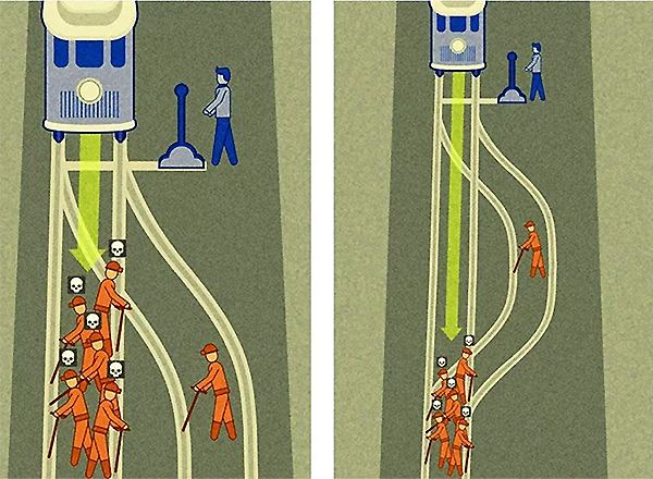Классическая ультимативная дилемма: движущийся поезд грозит пяти людям, привязанным к рельсам. Они могут избежать смерти, если переключить рычаг. Тогда поезд перейдет на другую колею и убьет только одного человека. Пожертвовали бы вы одним, чтобы спасти пятерых? А если вагонетку можно задержать? »»»