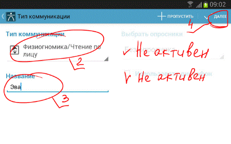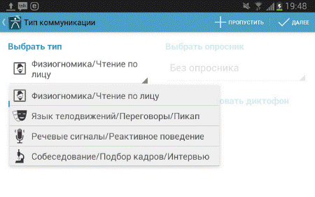 - Выбираем <Тип коммуникации> –> Физиогномика/Чтение по лицу