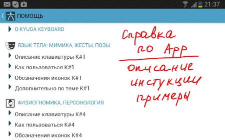 Варианты применения (на примере бесед с ребенком): Предположим ты общаешься со своим юным сыном на предмет алкоголя, курения. Иначе говоря, тебе бы хотелось понять говорит ли он тебе правду, принимает ли твои рекомендации или же утаивает от тебя что-то. Конечно же, для этого лучше иметь заранее подготовленные вопросы, которые, между прочим, можно сформировать при помощи Kyuda Кeyboard.