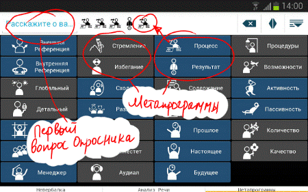 Таким образом, ты имеешь автономную и универсальную программу для работы с кадрами для получения так называемого метапрограммного профиля кандидата («LAB Profile» — Language and Behaviour)